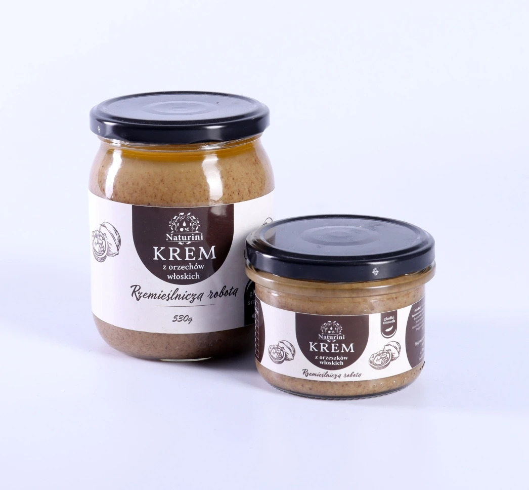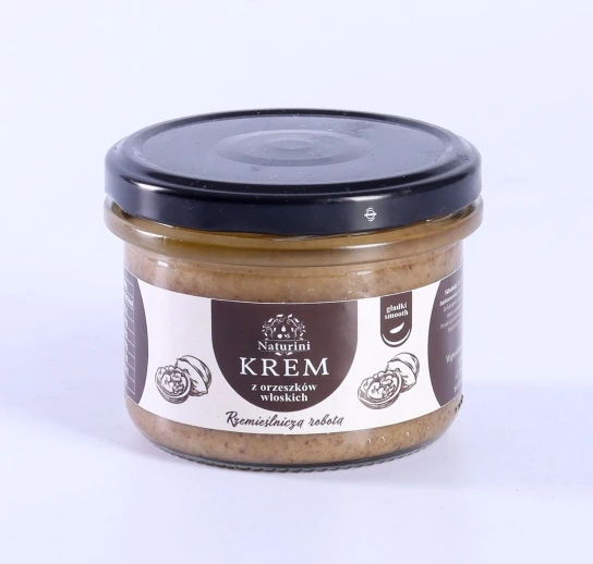 Orzechy włoskie poddawane są procesowi delikatnego prażenia i mielenia, dzięki czemu produkt posiada wyjątkowy smak.