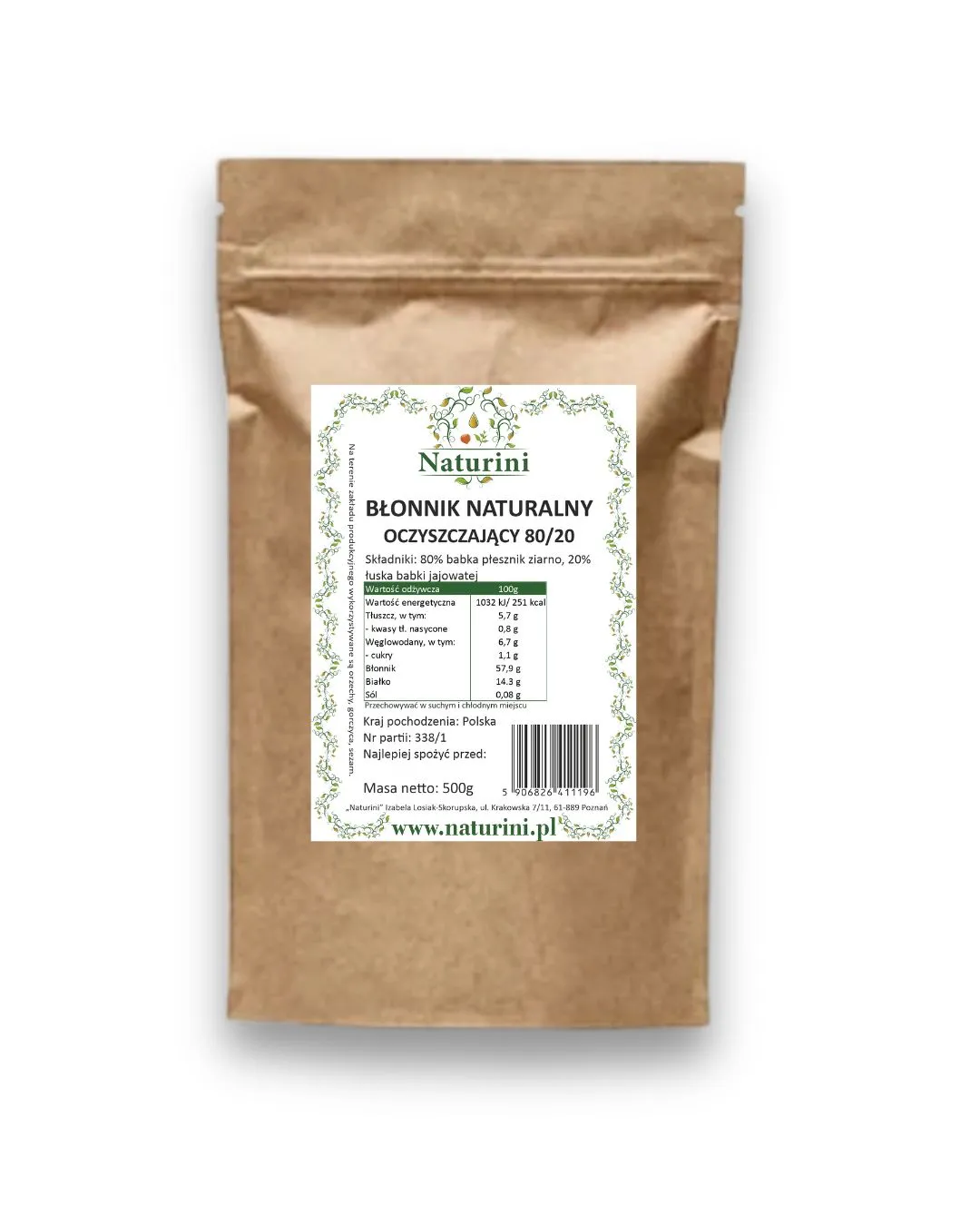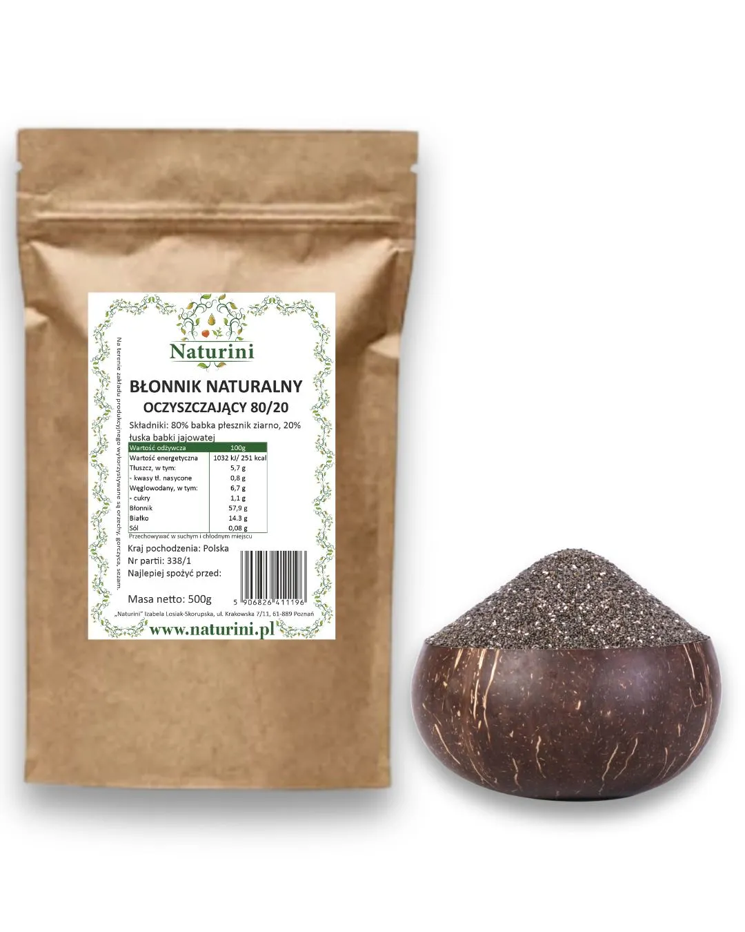 - Składniki: 80% babka płesznik ziarno, 20% łuska babki jajowatej